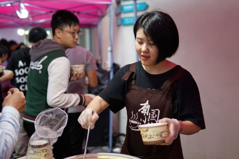 本次文化节延续了游园会的夜市传统,并首次采取了迪士尼风格的装饰设计,斑斓的彩灯和气球、logo和装饰带给人们耳目一新的视觉感受。湖畔灯火通明,摊位边传来一阵阵欢声笑语,热闹非凡。变脸、画糖人、跳竹竿、抖空竹、滚铁环、画扇子、方言大赛等民俗活动让同学们亲身体验各地区不同风俗文化的魅力;国际摊位也带领同学们领略了浓浓的异国风情。