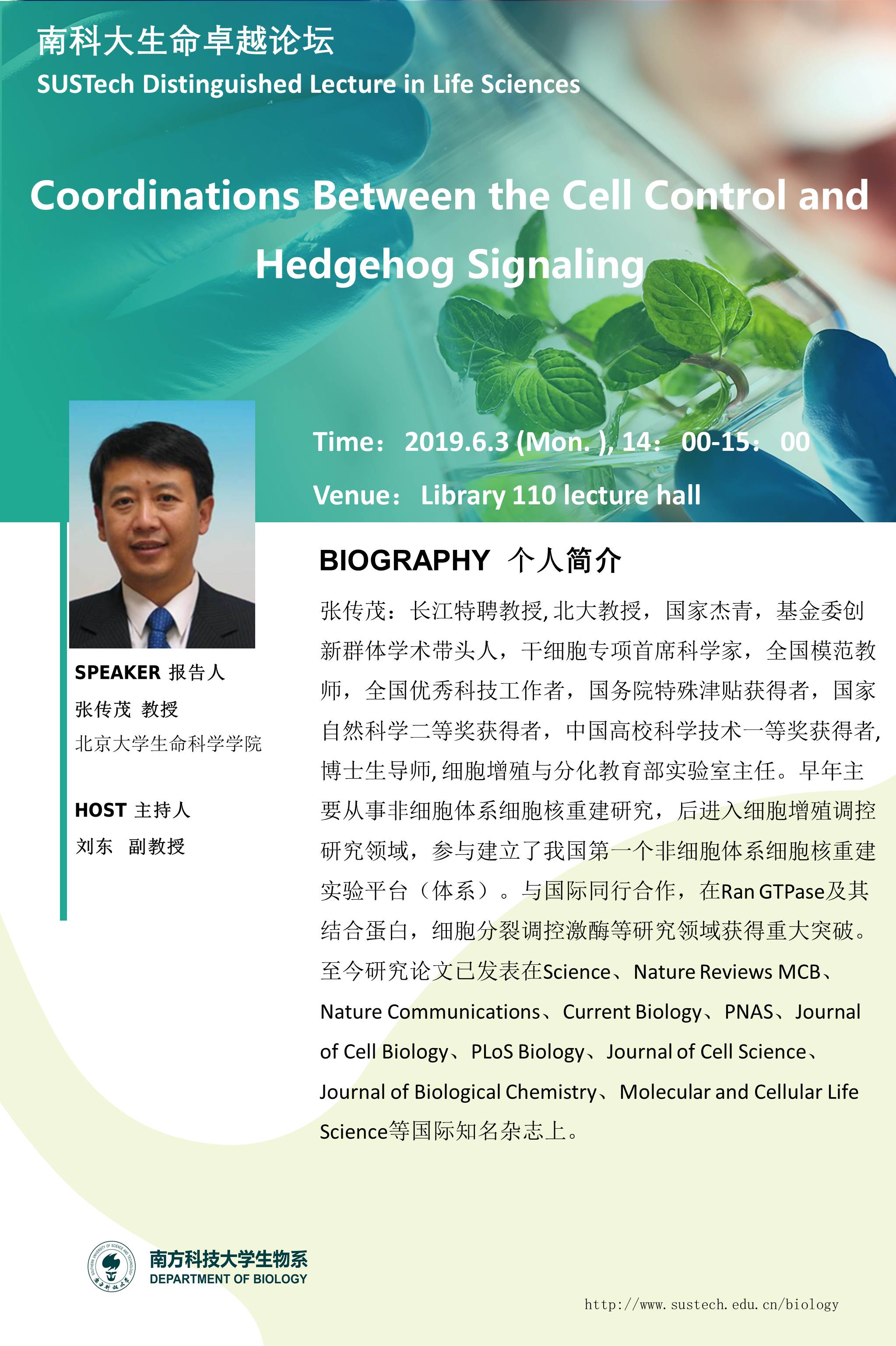 主讲人: 张传茂 教授(北京大学生命科学学院 )