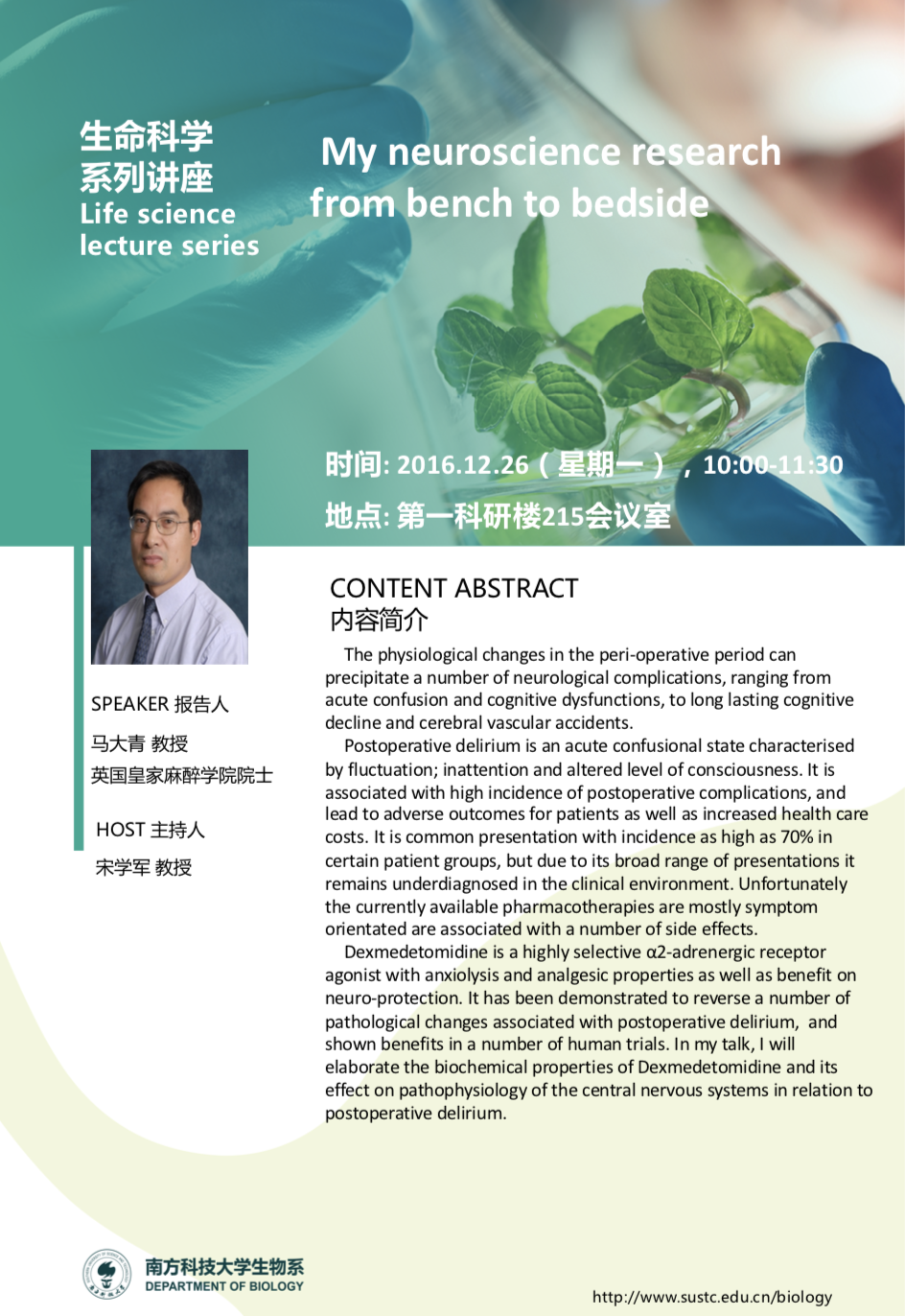 演讲者:马大青 教授英国皇家麻醉学...