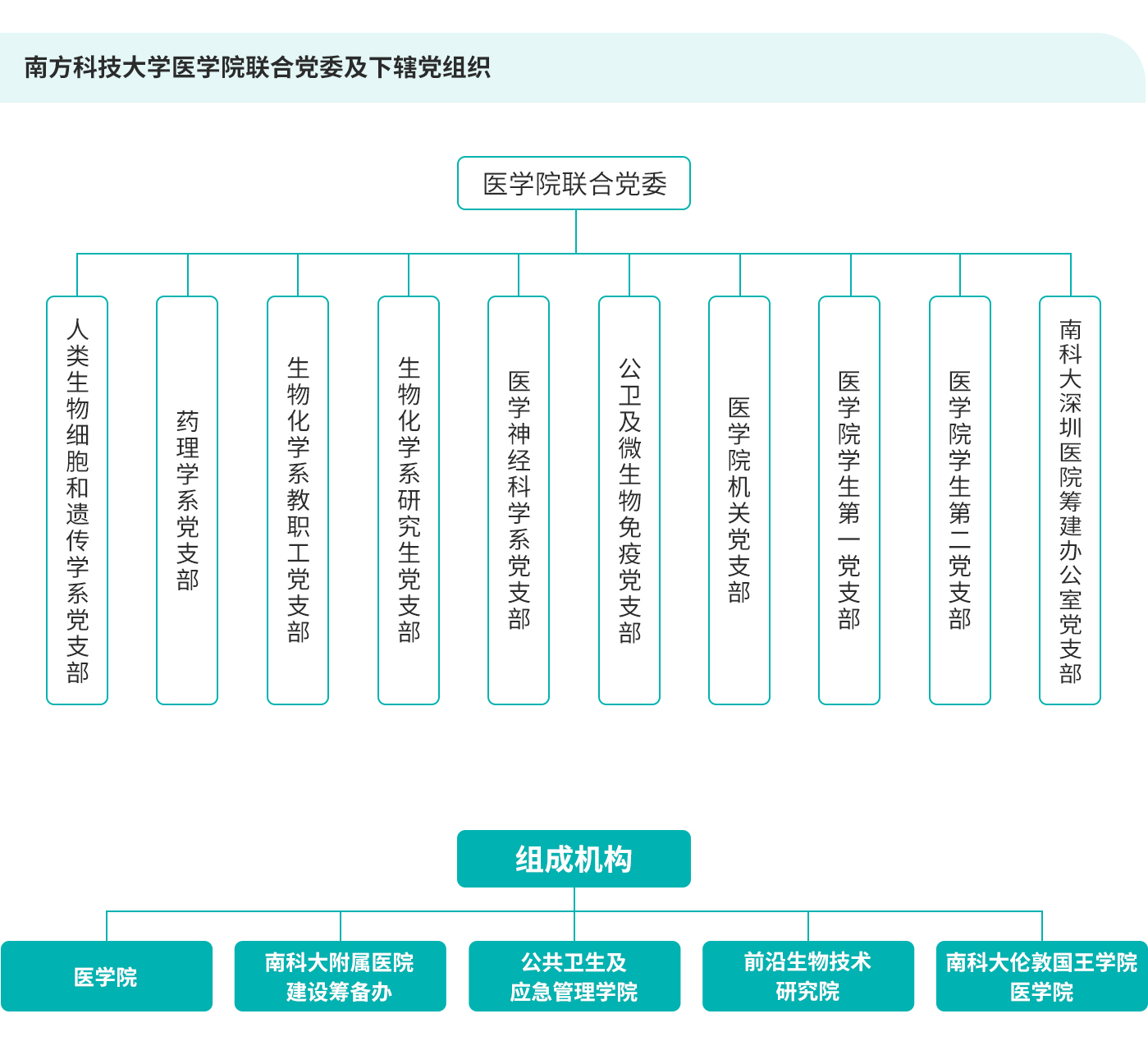 2021年5月29日,中国共产党南方科技大学医学院联合委员会成立大会暨第一次党员大会在第一科研楼报告厅召开,时任校党委书记郭雨蓉出席活动。经选举,王鹏飞等7名同志当选中国共产党南方科技大学医学院第一届联合委员会委员。随后,中共南方科技大学医学院第一届联合委员会全体委员在学习书坊召开第一次全体会议,选举产生中共南方科技大学医学院第一届联合委员会书记、副书记,并确定委员分工。