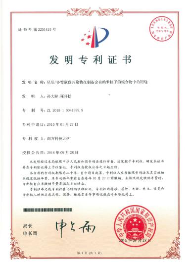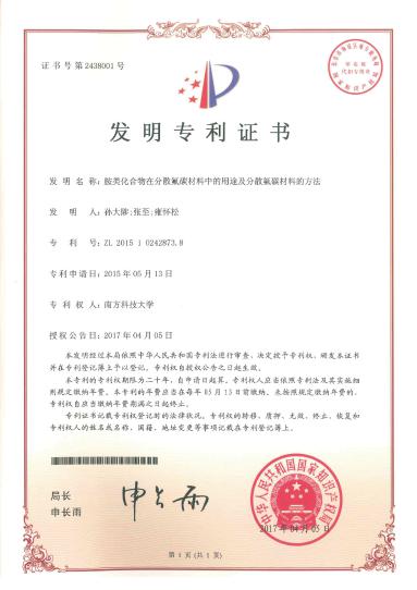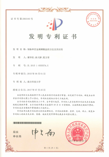 基于对二维纳米材料润滑与分散技术多年的研发积累,孙大陟教授团队已申请10多项相关发明专利,其中授权中国专利6项,授权美国专利1项。