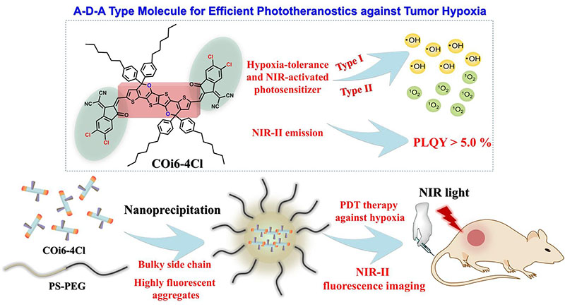 图1. NIR II发射的光敏剂应用于耐肿瘤乏氧的光动力诊疗示意图。
