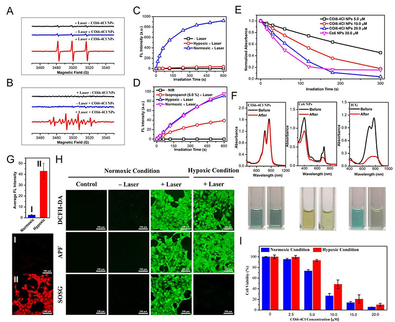 图2. COi6-4Cl纳米粒子显示出对氧气依赖较小的type-I型PDT。