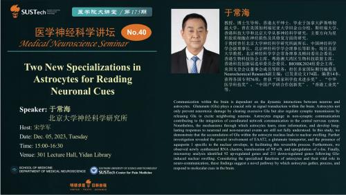 于常海, 北京大学神经科学研究所